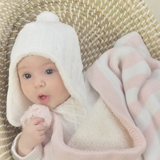 Blush/Pink Stripe Pompom Sherpa Blanket