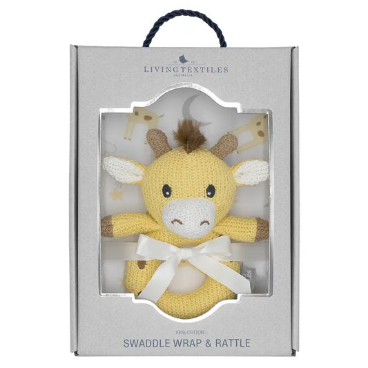 'Noah Giraffe' Swaddle & Ring Rattle Gift Set