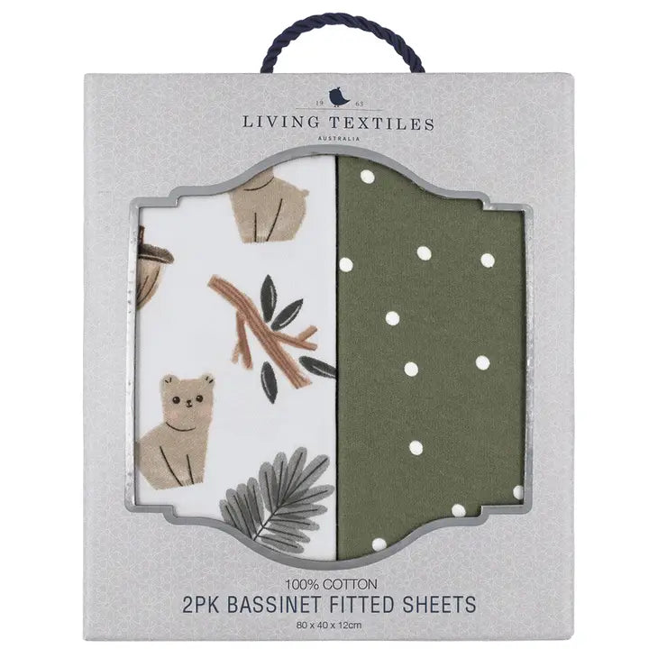 'Forest Retreat' Bassinet Fitted Sheet 2pk