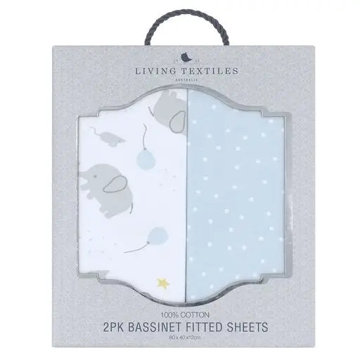 'Mason Elephant' Bassinet Fitted Sheet 2pk