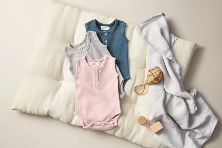 Made with the softest, most luxurious 100% organic waffle cotton – perfect for baby's delicate skin. Ultimate in quality and designed for comfort and durability. Garment is dyed for a vintage look and feel.