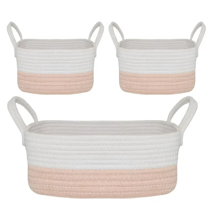 Perfect under the changing table or on top of drawers, this set includes one large and two small baskets, giving you ample room for storing diapers, wipes, lotions, and other baby items.
